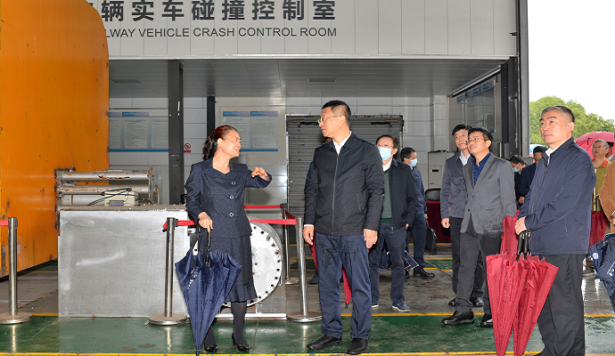 据周宣伶报:2021年10月15日下午,湖南省人民政府谢卫江副省长一行来校调研。省政府副秘书长彭翔、省教育厅厅长蒋昌忠,校领导易红、田红旗、朱学红、陈翔陪同调研。调研开始,首先参观了高速列车研究中心。现场观看了高速列车气动特性动模型实验,参观了轨道车辆碰撞实验室。高速中心领导梁习锋、鲁寨军、葛盛昌等陪同。