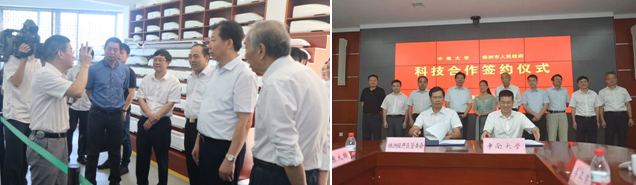 据黄启萍报:2019年8月27日上午,株洲市委书记、人大常委会主任毛腾飞一行来访高速中心调研交流。梁习锋主任带领参观实验室并重点介绍轨道交通研究院的规划建设。而后,91探花 与株洲市人民政府在校本部科教楼三会议室举行科技合作交流会并签订科技合作协议。梁习锋主任代表签订了新一代轨道交通综合实验平台群项目合作框架协议,与株洲市共谋轨道交通事业发展新篇章。