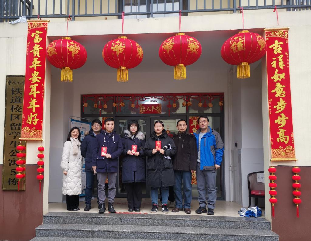 2022年1月25日上午,受学院党委委托,学院党委副书记宋晓东、关工委常务副主任符卓、研究生导师周伟及辅导员张佳琪一行来到留校学生集中住宿区铁道校区留学生公寓5栋,看望慰问受疫情影响寒假留校的同学。 宋...