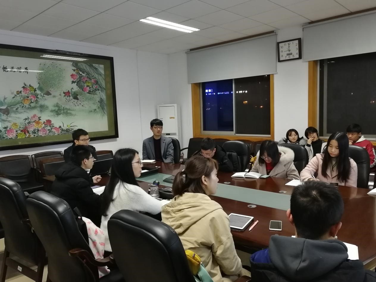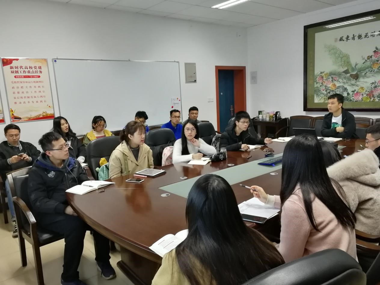 会议伊始,曹书记明确了此次会议的主要任务——讨论支部年度工作计划初稿,并将其完善落实。曹书记指出,支部年度计划的制定应从以下两点出发:一为全员参与支部工作,在建设支部的过程中提升自我,增强党性修养;二是加强对预备党员的培养,发挥支部“传、帮、带”的作用,提前应对支部组织结构的变化。此外,支部还明确了年度计划工作开展的主要思路,支部建设需贯彻落实学校学院的政策,围绕“五化建设”的方针,将“书香支部”建设作为贯穿全年的重点工作,持续推进特色支部创建工作;支部同时应把握好全年重要时间节点,着重开展以“实践、感恩、传承”为主题的毕业生党员系列活动,做好支部“交接棒”的工作。