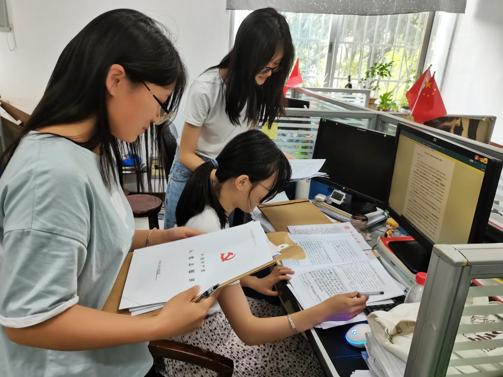 姜曼、刘肖影等同志为毕业生党员及积极分子整理档案,填写相关材料,传达学院通知,保证毕业生党员及积极分子组织关系能够正常转出。几位同志在繁琐的组织关系转出事务中及时解决了毕业生党员的疑惑,尽心尽力的为大家服务。