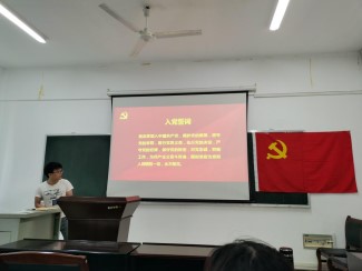 最后,全体党员重温入党誓词,面对鲜红的党旗举起右手,庄严宣誓,由支部书记王羽珊领誓。