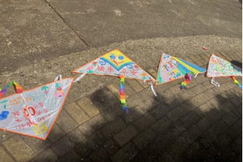 活动最后,支部成员三人一组绘制风筝、书写理想,让风筝与梦想齐飞,纸鸢与祝福高扬。