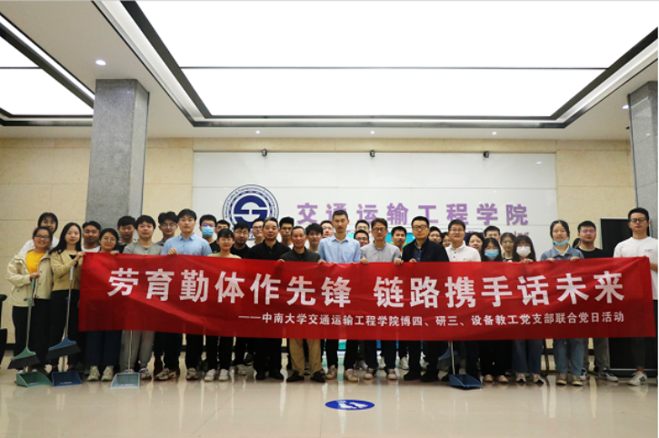 5月23日的早晨,交通院博士研究生四支部、研究生三支部及设备系教职工支部的党员同志齐聚交通楼一楼大厅开展主题系列联合党日活动的第三期内容——“劳动最光荣”交通楼大保洁活动。这是继前两次活动中的主题“从身边做起、从自己做起”向为他人、为集体服务的过渡,诠释了党的宗旨,弘扬了党员同志的作风。此外,通过自己辛勤的劳动,使得同志们更加能够感受他人劳动成果得来不易,从而在心底树立起尊重他人劳动、感恩他人奉献的观念,将本次劳育教育落到实处。