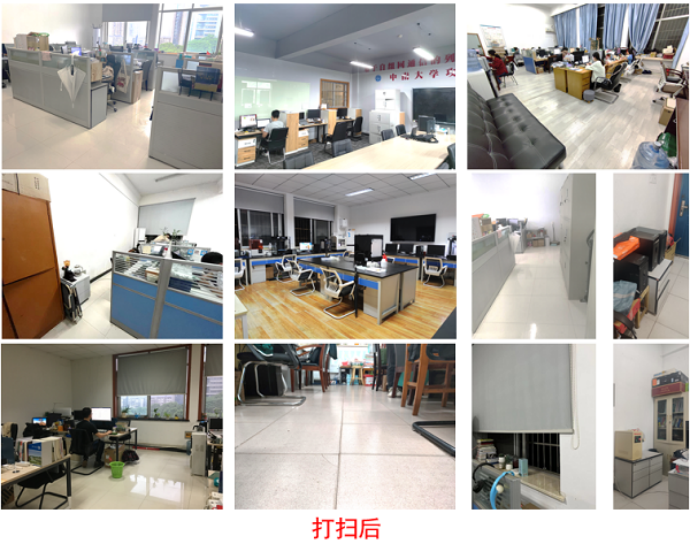 公告一经发布,支部内各位同志纷纷响应号召,积极投入到实验室卫生清扫及杂物整理的活动中来。由党员同志和积极分子带头进行的卫生打扫活动充分彰显了“劳育勤体作先锋”的主旨,打扫前后的实验室也呈现出了鲜明的对比效果。