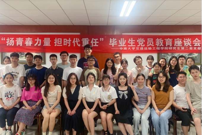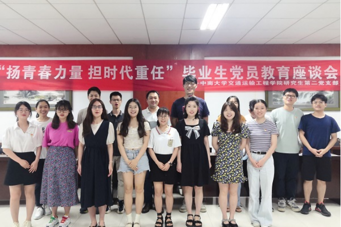 6月14日晚19:00,交通院研究生第二党支部于交通楼513教室顺利举行毕业生党员教育座谈会暨毕业生党员欢送会。会议由支部书记黄湘智同志主持,学院党委副书记宋晓东老师及支部全体党员同志参会。