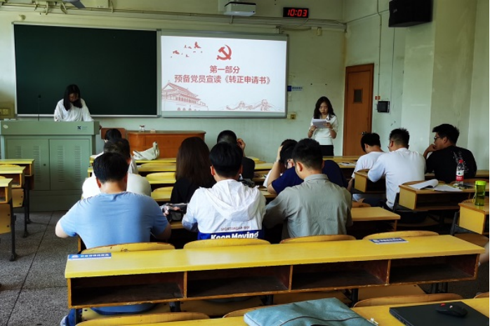 6月27日上午10:00,研究生第三党支部于世纪楼主楼403举行预备党员转正大会,讨论班靖、罗晓波和冉治三位同志的转正申请。本次大会由李欣钰同志主持,支部全体党员参加。