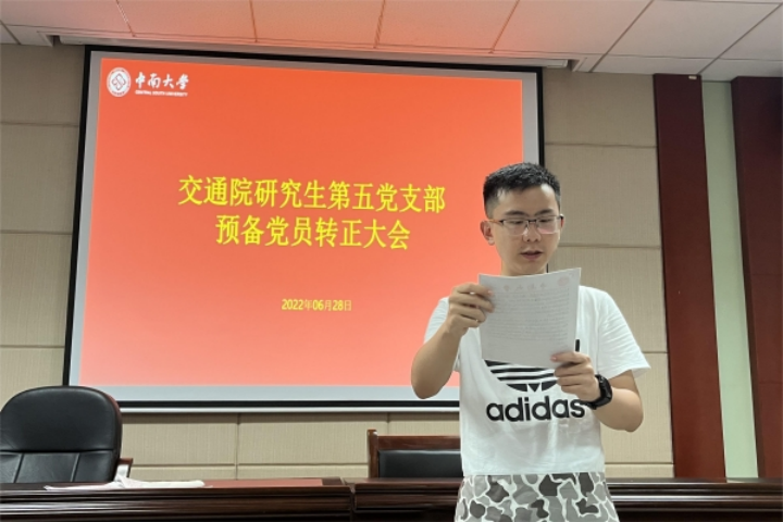 6月28日晚19:30,91探花 研究生第五党支部在交通楼513会议室举行全体党员大会,共有14名正式党员同志、3名预备党员同志参加会议,会议由支部书记冯推银同志主持。