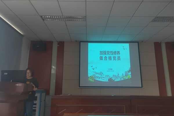 随后,支部书记王羽珊同志针对加强党性修养,做合格党员进行了展示分享。她强调,大学生党员要实现党的理论知识、社会实践和党内生活锻炼三者的有机统一,自觉提高自身党性修养。