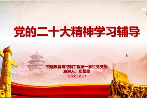 发布时间:2022-12-09 作者:刘旭东 摄影:张梓涵 来源:交通设备与控制工程第一学生党支部 浏览次数: