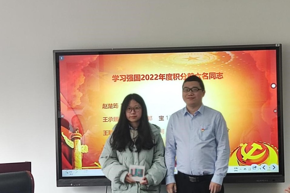 此外,支部对2022年度学习强国学习标兵进行了表彰,以此来树立榜样,激励广大党员同志向标兵看齐,将理论学习常态化,加强理论素养。