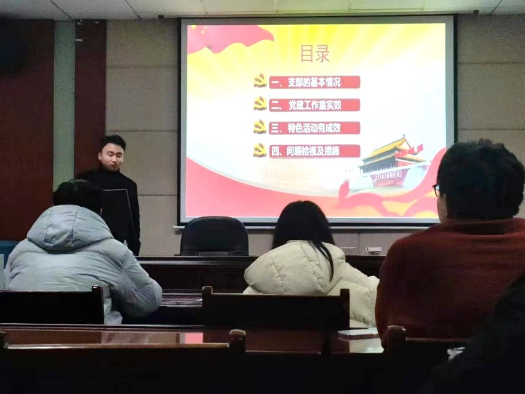 会议最后,支部书记苌艳路同志进行了支部书记述职报告。苌艳路同志介绍了支部的基本情况和组织构架,并提出了丰富创新的学习形式,加强了党支部的组织制度建设,并规范了发展党员流程。同时苌艳路同志指出支部设立的宣传栏、分享刊、警示标语等特色活动取得了较好成效。针对支部存在的不足,苌艳路同志也提出了相关改进措施。