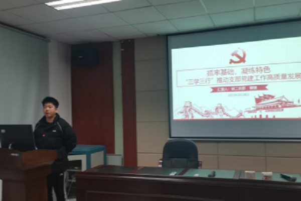 会议伊始,曾捷同志对2022年度的支部工作进行总结汇报。在过去的一年里,研二支部在支委班子的带领下,坚持以党的二十大精神和习近平新时代中国特色社会主义思想为统领,牢牢把握“五化”建设与“一课一片一实践”活动总要求,严格落实上级党委各项规定动作,同时,创新开展“三学三行”特色自选动作,通过“学”锤炼党员党性修养,通过“行”开展实践,推动党史学习教育提质增效。