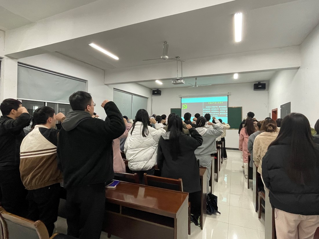 最后,马珊同志带领支部全体党员重温入党誓词。本次会议为研究生第一党支部注入了新鲜血液,促进了党员队伍的发展,进一步坚定了党员们的初心使命。