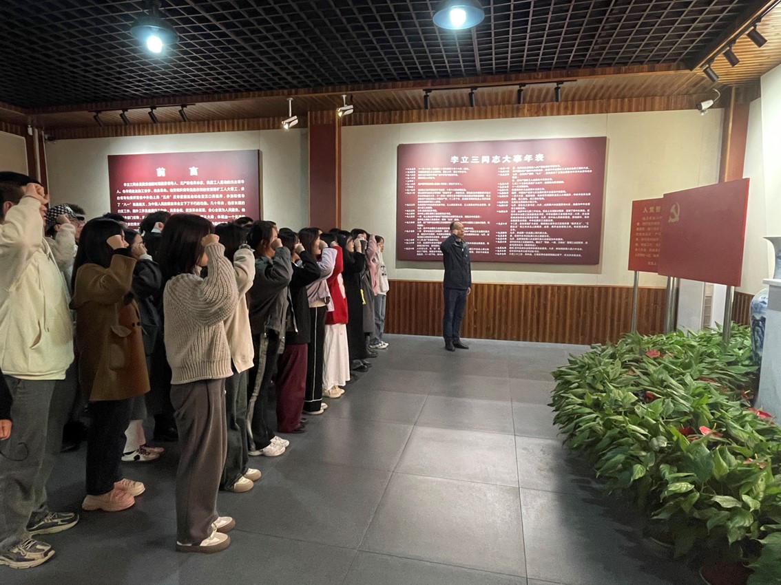 随后,同志们前往中国共产党的优秀党员、无产阶级革命家李立三同志的故居进行研学。在讲解员的带领下,同志们在此完整了解了李立三同志艰苦奋斗的一生,看到了一代共产党人为实现“为中华民族谋复兴”的历史使命所付出的努力和巨大牺牲。参观的最后,在学院党委副书记李苑同志的带领下,在场全体党员面向党旗重温入党誓词,一声声慷慨激昂的誓言响彻陈列馆,似乎在与李立三同志时空对话——“您看,我们现在的队伍很强大!”。