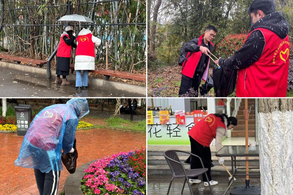 随后,各组同志分别前往指定区域,顶着细雨清理园区内的垃圾。正值初春,园区内一些品种的玉兰花已经在枝头盛开。广场上,各色的风信子、水仙花在微雨中摇曳,而含苞待放的郁金香更是吸引了游客驻足观赏。支部同志们捡拾垃圾的身影,与绚丽的春花相映成趣,共同构成了当天园区内独具特色的景观。