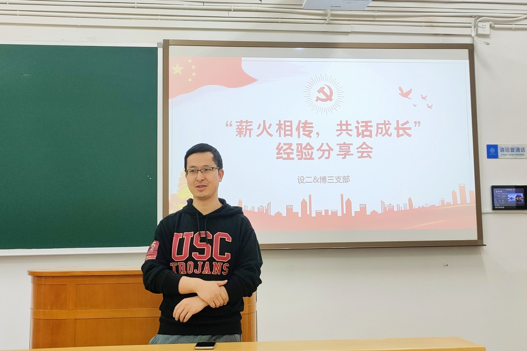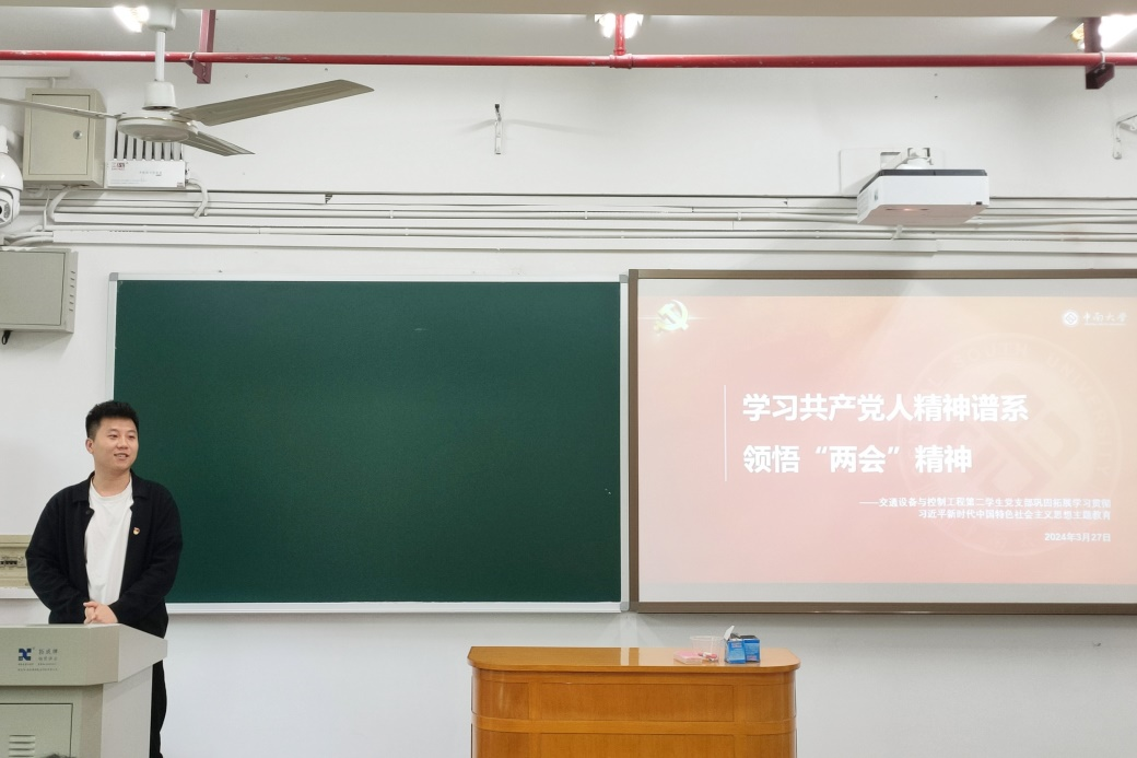 3月27日下午,交通设备与控制工程第二学生党支部联合博士研究生第三党支部于世纪楼A202教室开展“薪火相传,共话成长”经验分享会。会议由交通设备与控制工程第二学生党支部书记张健主持,邀请了3位优秀同志分享求职、竞赛、考研经历与宝贵经验,并开展了专题学习。