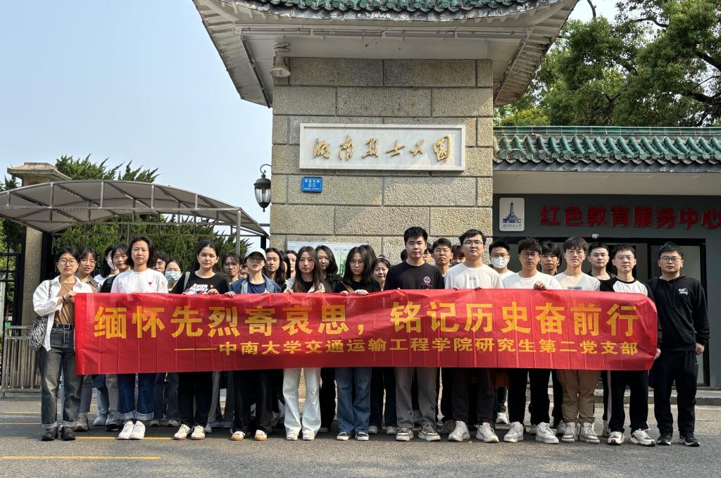 在清明节来临之际,为缅怀革命先烈的丰功伟绩,表达哀思之情,同时也为鼓舞支部同志们传承红色基因,不忘奋斗初心,4月2日,交通院研究生第二党支部全体党员和部分积极分子前往湖南烈士公园开展“缅怀先烈寄哀思,铭记历史奋前行”主题党日活动。