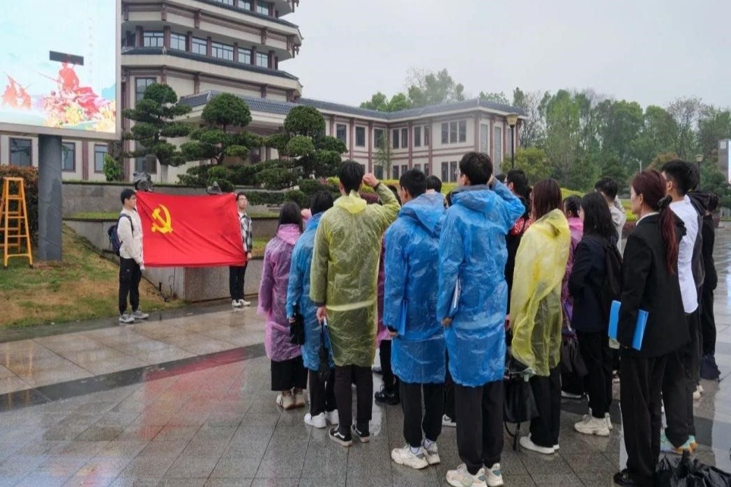 活动伊始,设一支部的党员同志们在湖南革命陵园的入口集合,随后一同前往人民英雄纪念碑前敬献鲜花。在人民英雄纪念碑前,设一支部的党员同志们全体肃立,唱国歌,向为中国人民解放事业和中华人民共和国建设事业英勇献身的烈士致以崇高的敬意。依次献鲜花后,设一支部的党员同志们移步至纪念碑一侧,面向党旗而立,重温入党誓词。“随时准备为党和人民牺牲一切!”一声声铿锵有力的誓言彰显着新时代大学生党员应有的朝气和韧劲。