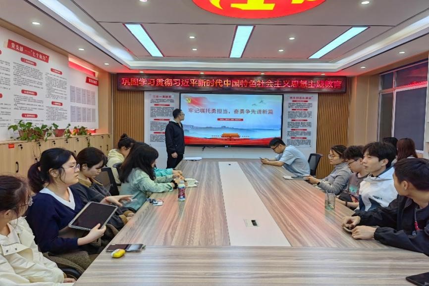 4月17日晚,研究生第六党支部组织支部全体成员在第一综合楼530开展“牢记嘱托勇担当,奋勇争先谱新篇”党课暨党员大会。