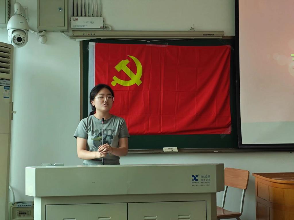 最后,支部书记王羽珊老师作总结讲话。王羽珊同志对同志们表示祝贺,强调新接收的预备党员要记住自己的入党时间。她简单介绍了目前支部情况,包括支部历年获得的荣誉、支部的工作体系等。她鼓励新接收的同志们尽快熟悉支部,加强归属感。她指出同志们在支部中应该有责任感,在外应该思考自己的一言一行是否符合党员要求,并对所有党员同志提出三个要求:第一,要团结。增强团队凝聚力才能使支部更好地发展。第二,要守初心。记住自己的入党初心、担当责任,严格要求自己, 避免自身行为逐渐偏离初心。第三,要注意自己的言行,比如当网上出现舆情,应该以党员的身份制止这种行为,以身作则来引导他人正确对待。王羽珊同志寄语同志们要能够挑担子,而不是掉链子,秉持初心,要向上、能做事、能发光,成为身边同学的榜样。