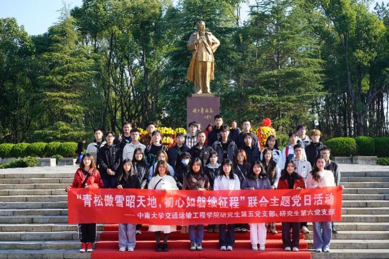 8:20,全体党员在铁道图书馆前坪集合完毕,整装待发。8:30,党员们乘坐大巴车前往湖南省宁乡市花明楼学习刘少奇同志生平事迹。