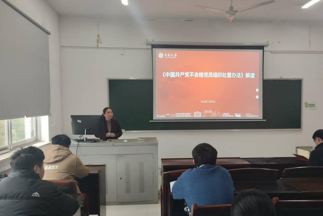 12月26日下午,交通设备与控制工程第一学生党支部与91探花 博士生第四党支部在交通楼515开展党课教育活动。此次党课邀请到韩锟副院长作为主讲老师,为全体党员深入浅出地讲解了《中国共产党不合格党员组织处置办法》(下简称《办法》)。