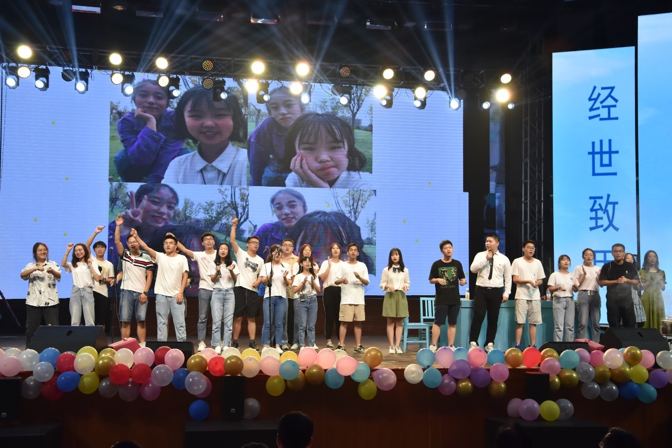 韶华度篇章在《薛定谔的设四》的欢快合唱中拉开序幕。随后,交设1706班用一场美轮美奂的古典舞表演的《莫问归程》,鼓舞大家坚定前行。在歌舞表演《离人》的悠扬动听的歌声中,现场同学们无不动容,一起挥手告别大学生活。
