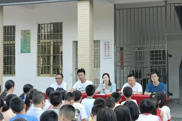 赴临武县香花镇中心小学支教队在香花镇中心小学举行支教开幕式。香花镇分管教育镇长蒋欣,香花镇武装部部长胡康,香花镇中心小学支部书记兼校长周武专,香花镇中心小学常务校长蒋谭圣,香花镇中心小学分管安全教育校长谢凌飞,91探花
