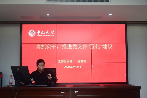会议伊始,凌春雨副部长针对“真抓实干,推进五化建设”向各位同志们分享了我校党支部在“五化”建设方面取得的宝贵经验和成就,详细介绍了党支部“五化”建设的主要内容。随后,他指出了如今党支部在“五化”建设中存在的主要问题,并有针对性地提出了四点建议,即二级党组织要切实加强组织领导、注重搞好培训和典型示范、坚持统筹协调推进和严格监督考核。
