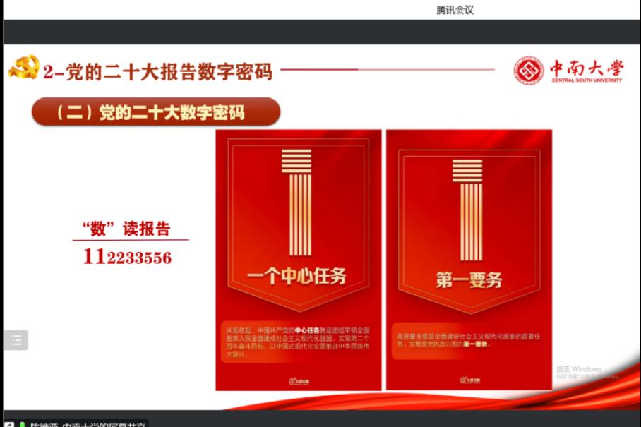 12月28日下午16:30,学院党委委员、副院长陈维亚教授线上带领交通运输与物流工程学生党支部、博士研究生第六党支部开展了“数读二十大密码,争当新时代青年”主题党课。此次党课由交通运输与物流工程学生党支部书记张佳琪老师主持,两个党支部全体同志参加。