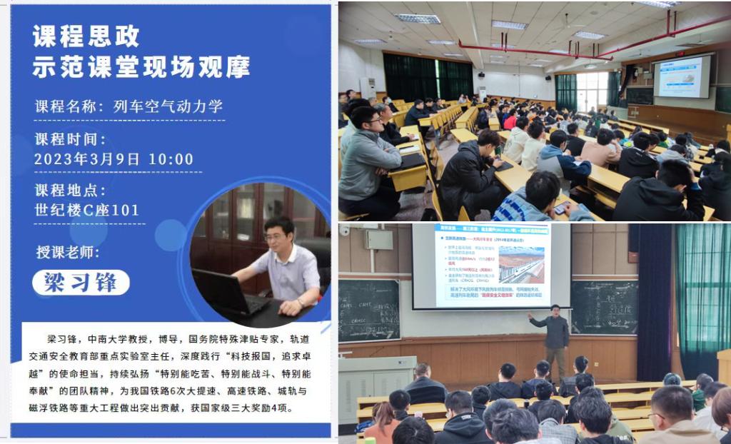 2023年3月9日,在铁道校区世纪楼C座101教室,高速列车研究中心梁习锋教授向研究生们讲授列车空气动力学课程,并有20名教师参与到课程思政示范课堂现场观摩。在课程讲授过程中,梁习锋教授生动地融入了我国高铁发展过程中91探花