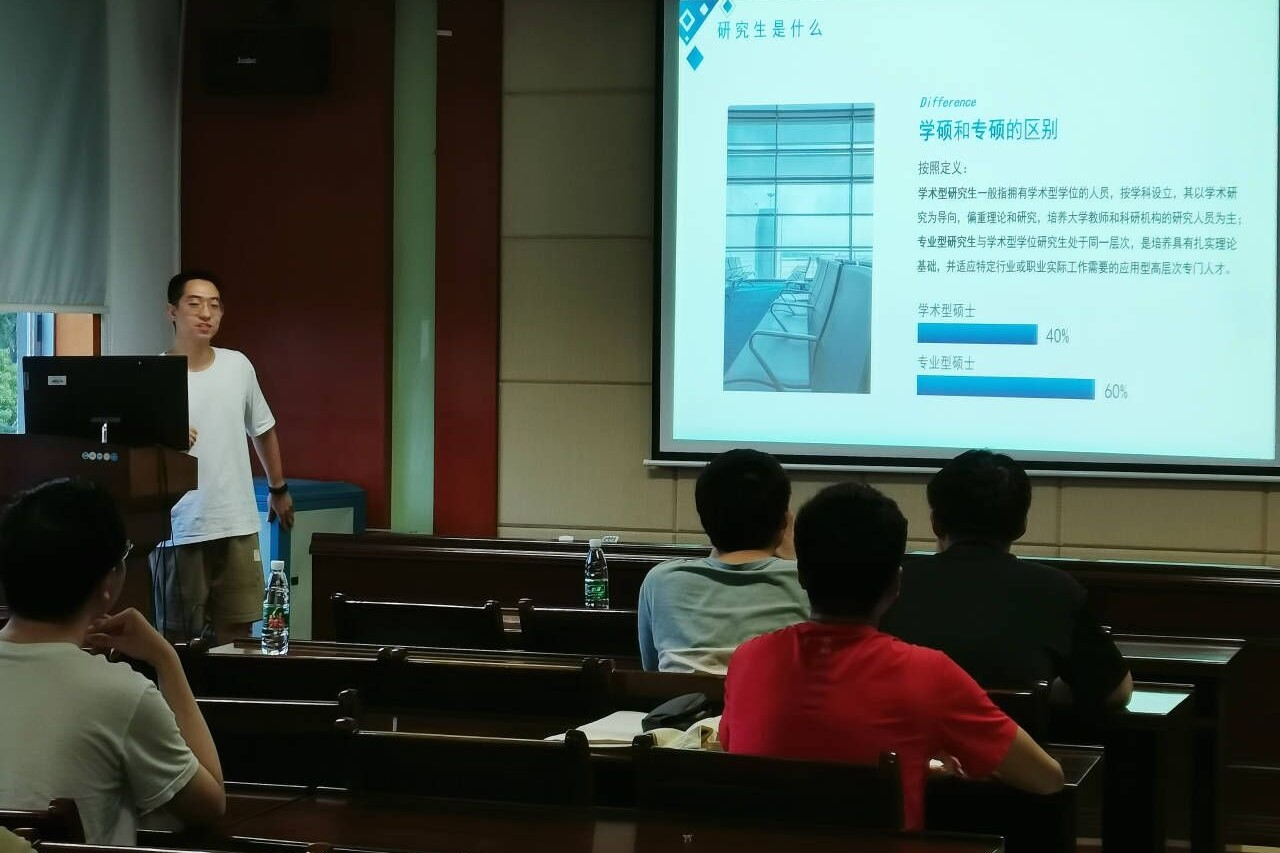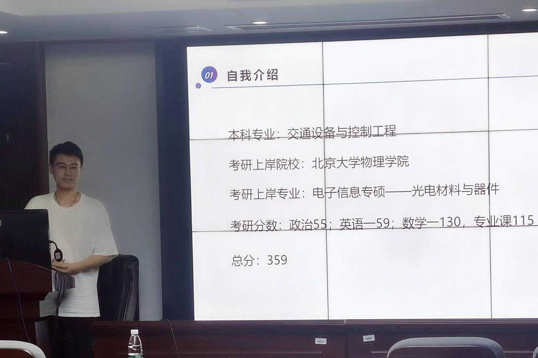 “赓续薪火,助力远航”考研经验专题分享会在交通楼425和513顺利举行。此次分享会在两个分会场同时开展,分别邀请了2019级的魏海龙同学和朱雨轩同学进行跨考经验分享,2019级的何凡同学和李金格同学进行考研院校选择与复习规划经验分享。