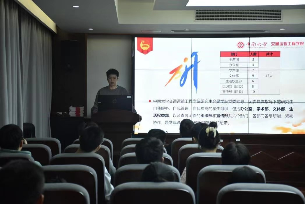 10月10日晚19:30,交通院第十七届研究生会工作交流会于铁道校区交通楼425顺利举行。学院团委书记张健、研究生会全体成员参加会议,本次会议由交通院研究生会主席马捷主持。