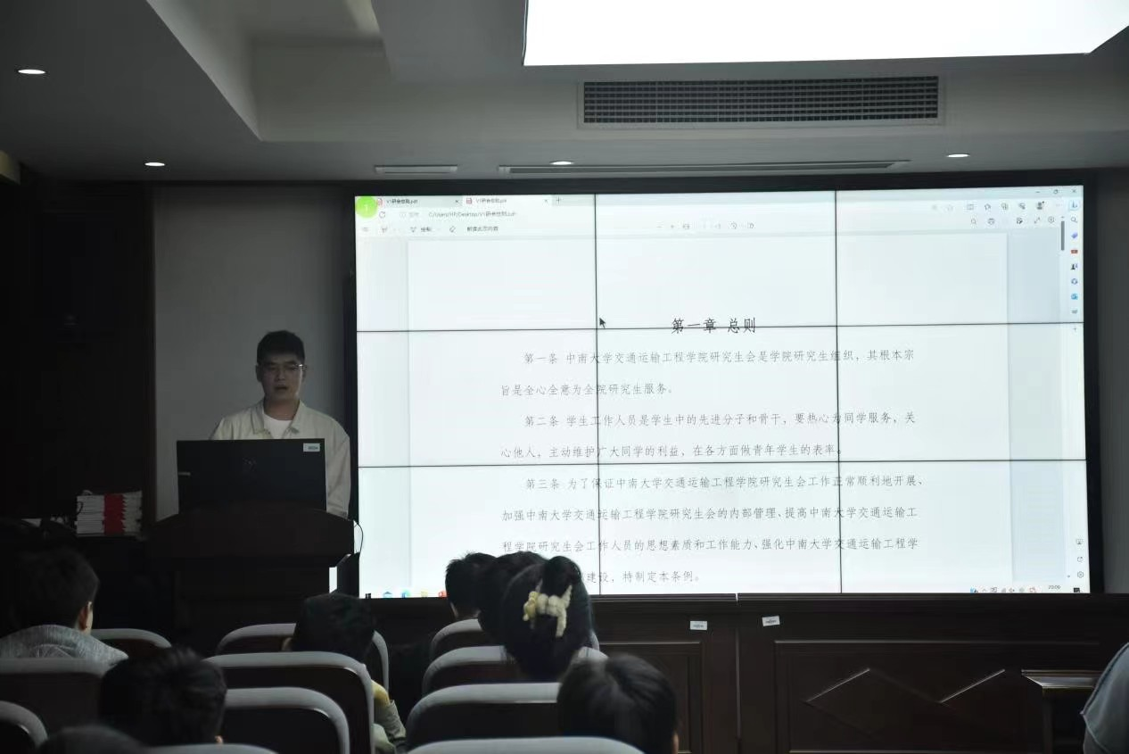 最后,为规范研究生会的各项工作、提高工作效率,研究生会主席董开云带领全体成员学习了研究生会规章制度,助力91探花