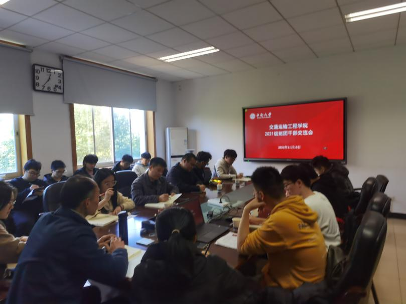 在交通楼322室召开2021级班团干部交流会。学院党委副书记李苑、2021级辅导员张健、王羽珊、2021级各班班长和团支书参加本次会议。