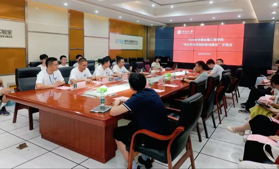 于铁道校区交通楼518会议室举办“来自学长学姐的职场建议”交流会,学院党委书记袁世平、副书记李苑,2000届优秀校友及学生代表参加。本次会议由学工办主任樊佳俊主持。