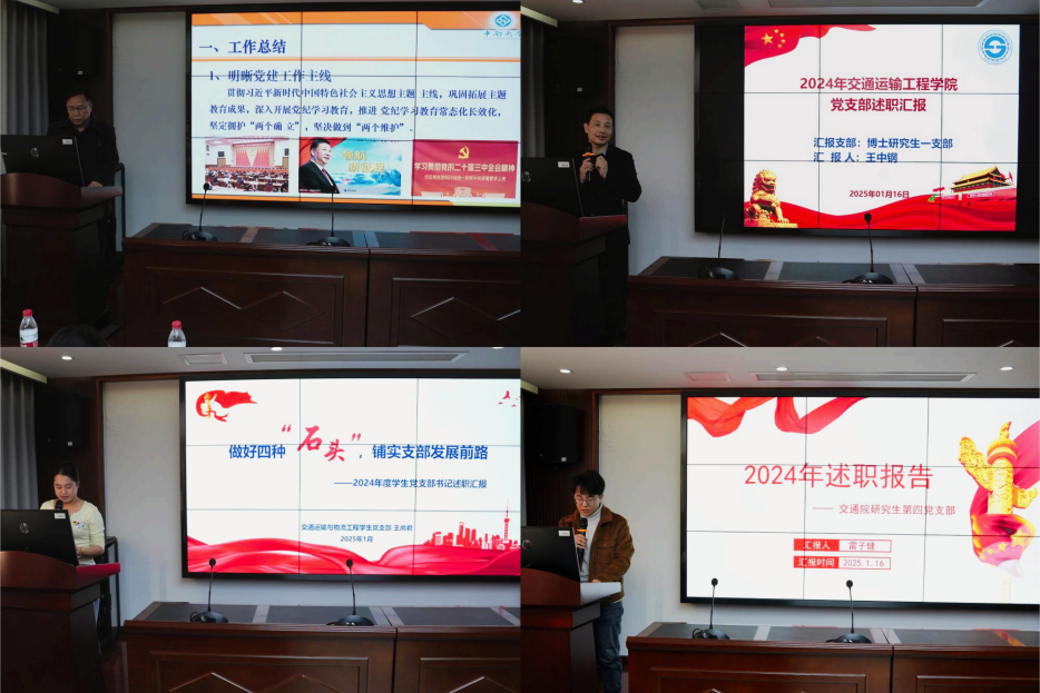 会上,各党支部书记依次进行述职汇报,围绕2024年度党建工作开展情况、取得成效、存在问题和改进措施等方面作了系统总结。汇报中,各位书记紧密结合支部工作实际,突出思想政治建设、组织生活开展、党员教育管理和服务学院中心工作等重点内容,充分展现了学院基层党支部在推动党建工作中取得的积极成果。