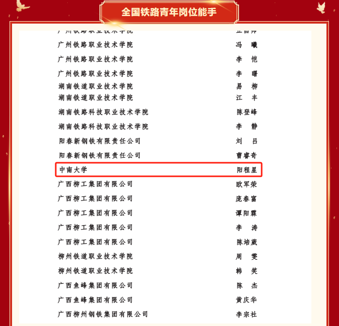 在2025年度中国青年五四奖章暨新时代青年先锋奖评选中,轨道交通空气动力与碰撞安全技术创新团队荣获“中国青年五四奖章集体”荣誉称号;在全国铁路2024年度“双创立功”竞赛中,阳程星老师荣获“全国铁路青年岗位能手”,刘东润老师荣获“全国铁路向上向善好青年”荣誉称号!
