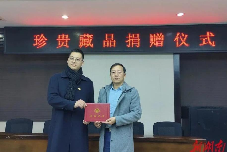 长沙党史馆为捐赠者办理了正式手续并颁发了荣誉证书。彭亚欧强调:“文物最大的意义就是如何活化利用,充分发挥它的历史价值,馆方后续将推出相关展览及交流等,让这批文物尽可能多与公众见面。”
