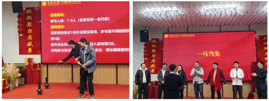 联谊会特别设置了新入职青年教师自我介绍环节,以及投壶、正话反说、你划我猜等互动游戏。各系所教师踊跃参与,现场欢声笑语不断,彼此传递着温暖与祝福。