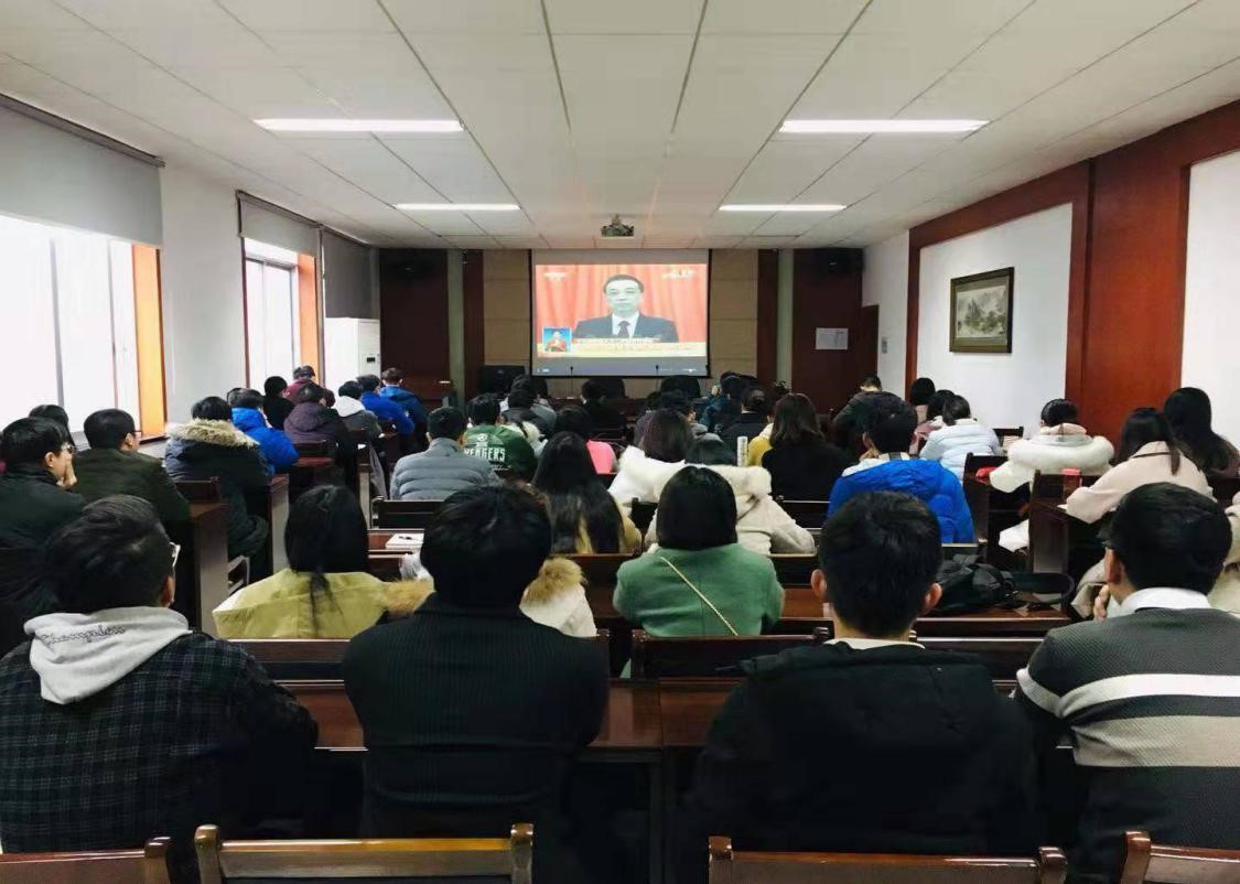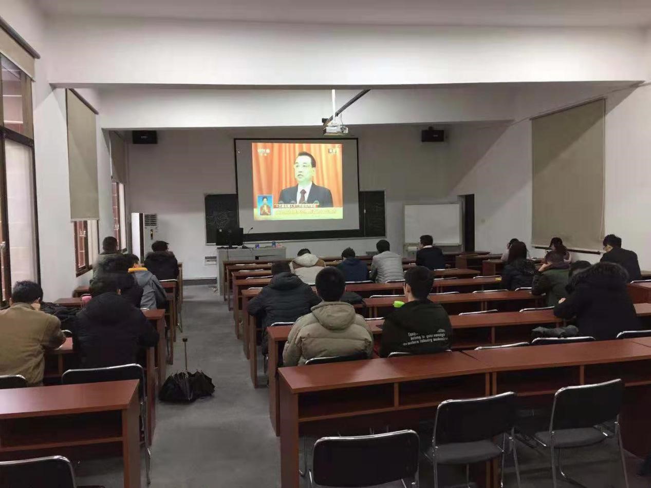 3月5日上午9时,十三届全国人大二次会议在人民大会堂开幕。交院师生热切期待和关注,支部党员以及各年级学生在铁道校区、实验室、新校区教室收看十三届全国人大二次会议开幕式直播。学院党委班子成员在会议期间观看了李克强总理作政府工作报告的同步直播。