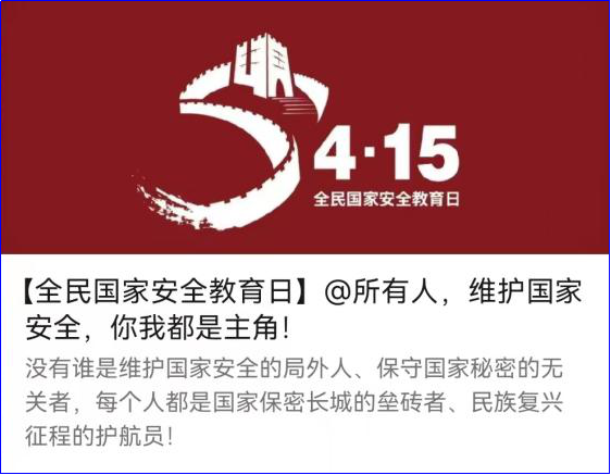 由交通院新闻宣传中心牵头,明确4月15日是第七个全民国家安全教育日,聚焦“树牢总体国家安全教育观,感悟新时代国家安全成就,为迎接党的二十大胜利召开营造良好氛围”的教育主题,普及相关知识,以图文结合的形式在学院官方QQ、微博同步更新动态,各班级官Q转发、跟评。