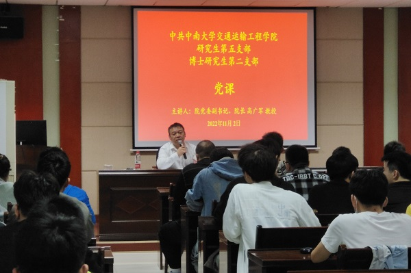 11月2日晚19:00,中共91探花 研究生第五党支部与博士研究生第二党支部于交通楼513开展了“学习宣传贯彻党的二十大精神”专题联合党课。此次联合党课的主讲人为院党委副书记、院长高广军教授,支部全体党员同志到场学习。
