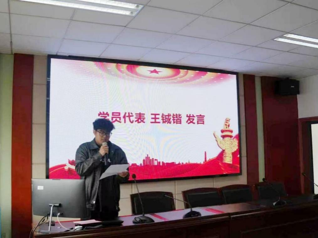 典礼开始,全体参会成员奏唱国歌。紧接着,学员代表王铖锴进行发言。他表示,本次培训使全体学员深入领会了党的宗旨,对党的指导思想有了更透彻的理解。全体学员将始终牢记自身职责,坚定理想信念,努力提高自身理论素养和实践能力,以实际行动践行青春誓言,不负党和人民的期望。