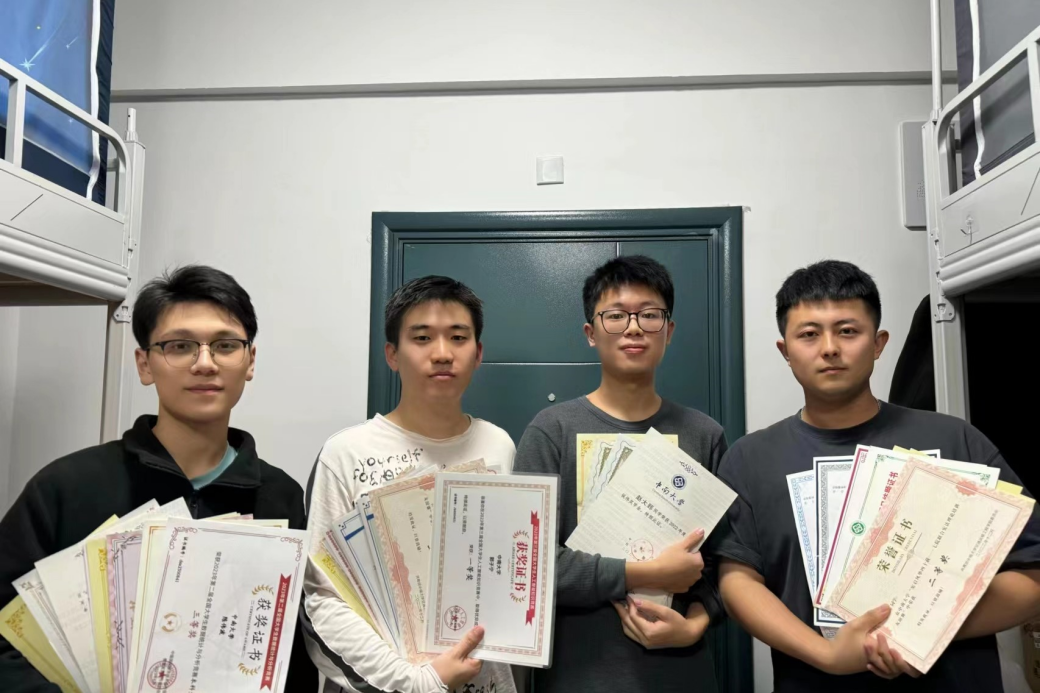 “我们会以各种形式督促鼓励彼此的学习。”陈伟波随后介绍了他们互帮互助的“小秘诀”。他们寝室每周定期举行小组学习交流会,就课程内容、91探花 进展等课题进行讨论。共同制定的学习计划和目标,互相监督和鼓励的机制,促使每个人都在规定的时间内完成学习任务。此外,四位同学在参加学术竞赛、91探花 项目、研讨会等实践中共同收获了经验与学术成长。多样的学习形式在三年中不断鼓舞着四人的干劲,他们怀着学术热情和对未来的憧憬,在不断的磨砺当中,多次收获了各类奖项,成绩斐然。