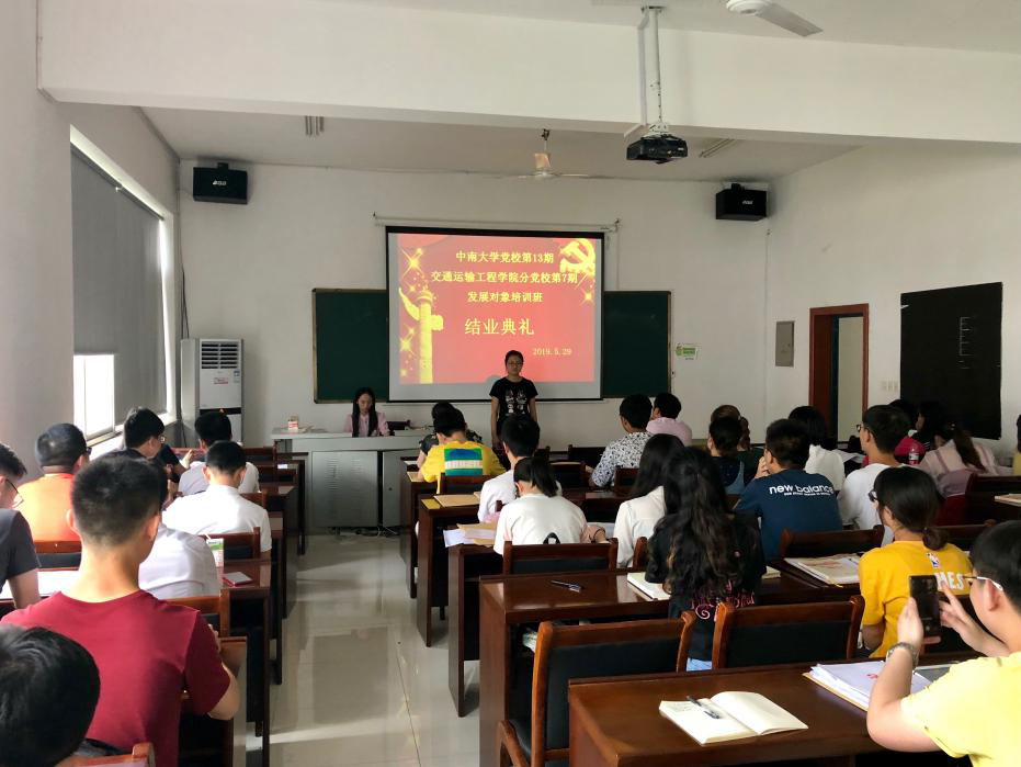 5月29日下午五点,交通院第七期发展对象培训班结业典礼在交通楼509顺利进行。院党委副书记宋晓东、培训班班导师韩艳老师出席本次典礼,分党校管理部干事李冰洁主持典礼。
