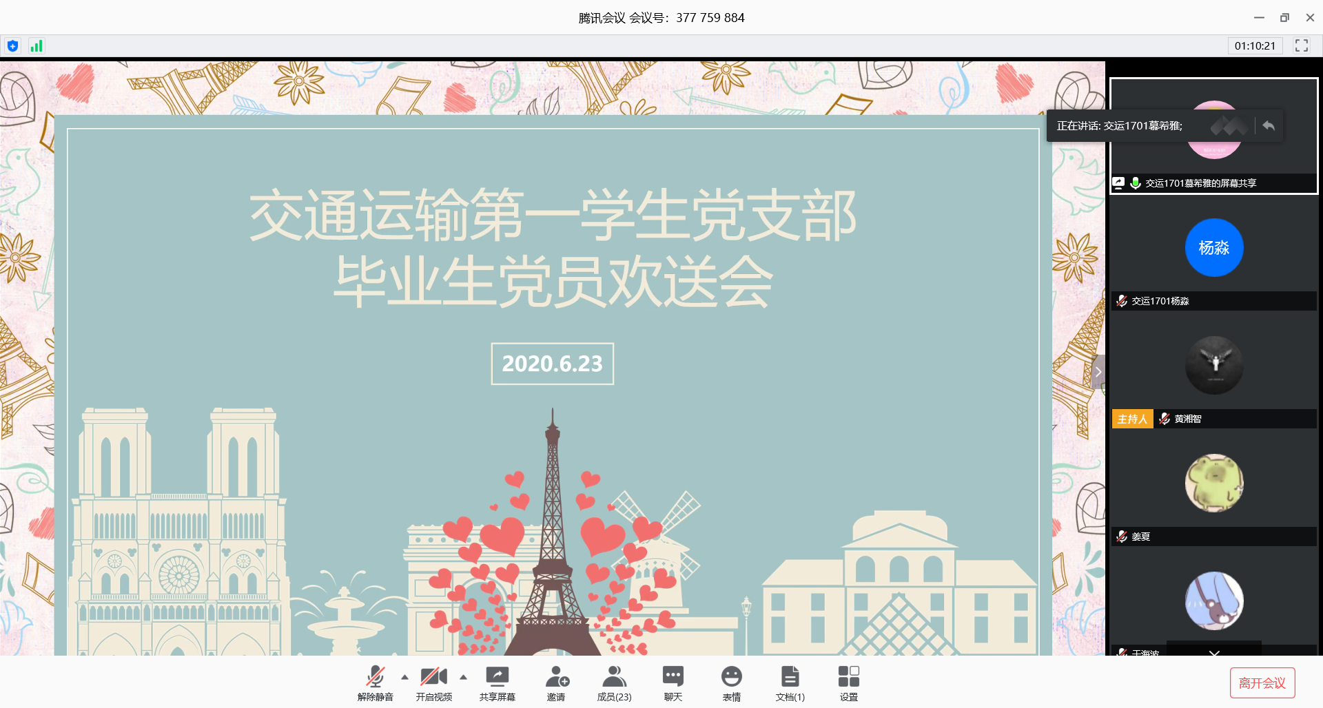 6月23日下午三点,交通运输第一学生党支部于线上举办了“学习两会精神”六月主题党日活动暨毕业生欢送会,支部全体党员和发展对象参加此次会议,会议由胡定昌同志主持。