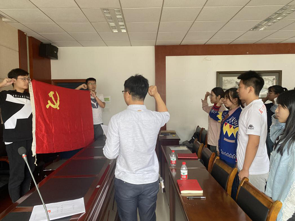 随后,发展对象们表示,他们一定不辜负党组织的信任,积极学习,努力工作,刻苦钻研,以一名共产党员的标准严格要求自己,充分发挥好党员的先锋模范作用,不断加强自己的党性修养,提高理论知识水平,不断提高为身边同学和老师服务的能力与水平,自觉参与支部建设,积极为党支部做出自己的贡献。随后,支部书记曹超同志带领新预备党员和支部党员同志一起进行了入党宣誓。