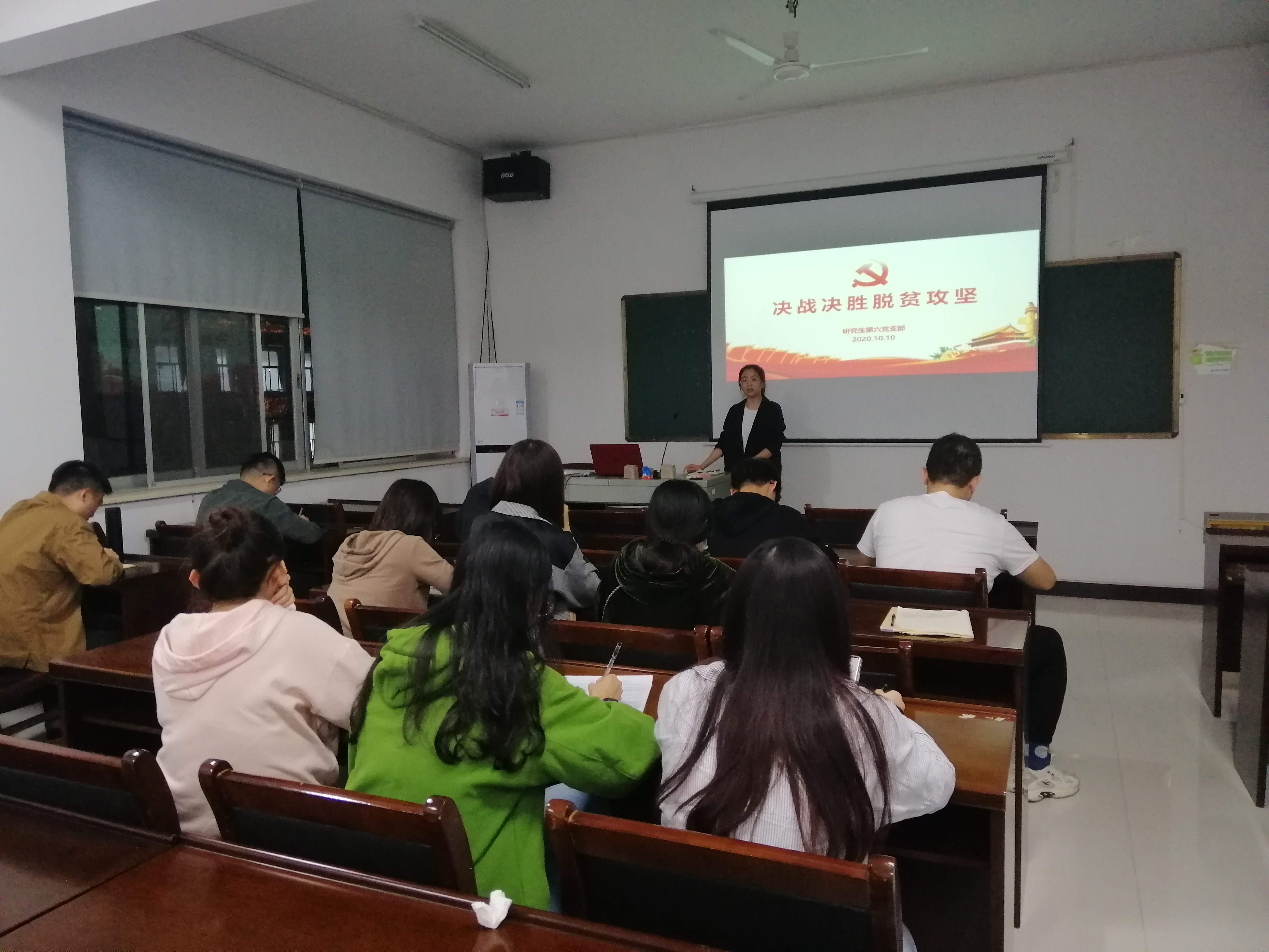 10月10日晚上七点半,交通院研究生第六党支部在交通楼509举行党日活动会议。本次会议主要目的是学习习近平总书记在决战决胜脱贫攻坚座谈会上的重要讲话、91探花 助推脱贫攻坚的案例以及习近平总书记到湖南视察时的重要讲话精神。支部全体党员与预备党员参会,会议由党支部书记赵苛欣主持。